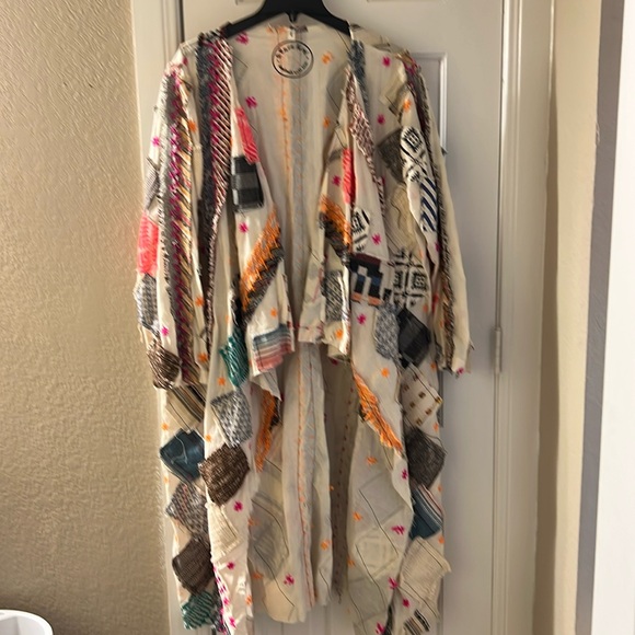 Perfectly adorable! Cotton duster with fabric patches! Super fun and dress up or down! Light weight! Length 48 inches!