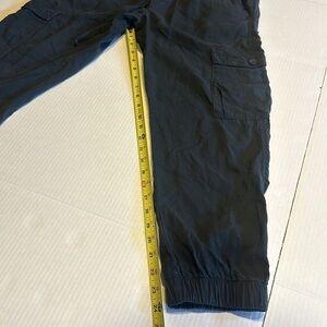 EUC pants that are lightweight w button pockets front and back. Color is dark grey to charcoal. Minor wear