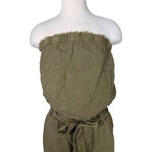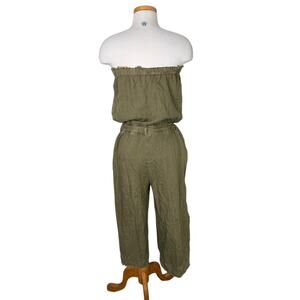 Cloth & Stone Anthro Green Strapless Frayed Cropped Jumpsuit Wide Leg Large