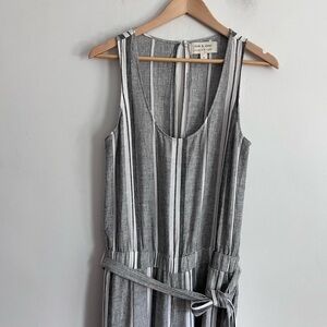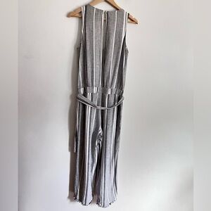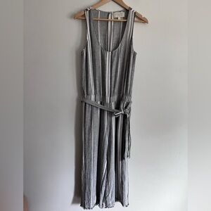 Cloth & Stone Anthro Jumpsuit White Grey Sleeveless linen blend Belted Stripes