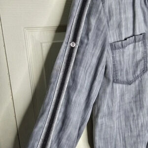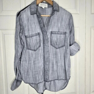 Cloth & Stone Anthro Size S Shirt Gray Chambray Tencell Split Back Roll Tab
