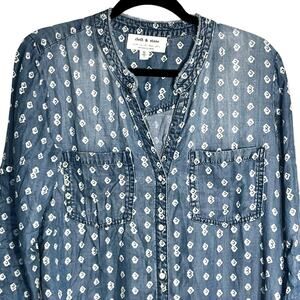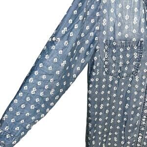 Cloth & Stone Anthropologie Chambray Print Button Down Tunic Shirt Dress Small
