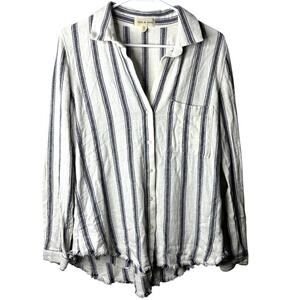 Anthropologie Cloth & Stone Striped Button Down Shirt Linen Blend M