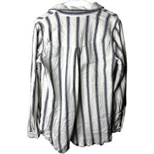 Cloth & Stone Anthropologie Cotton White Blue Stripe Button Down Shirt Women Med