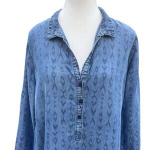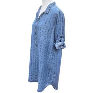 Cloth & Stone Anthropologie Denim Chambray Ikat Tunic Dress Long Sleeve Casual M
