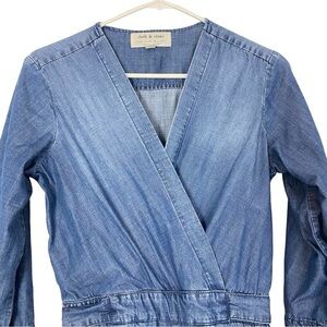 Cloth & Stone Anthropologie Denim Chambray Jumpsuit Womens Size XS Blue Wide Leg