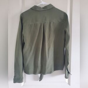 Cloth & Stone Anthropologie Forest Green Collared Button Down Tie Waist Shirt