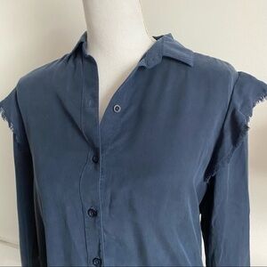 Cloth & Stone • Anthropologie Navy Ruffle Shoulder Blouse