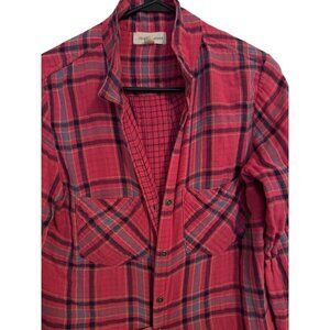 Cloth & Stone Anthropologie Pink Brecken Plaid Button Down Shirt Woman's Medium