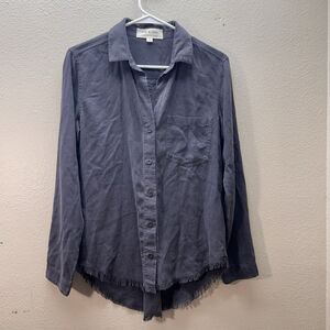Cloth & Stone Anthropologie Size XS Gray Fringe Button Down Shirt Top Lyocell