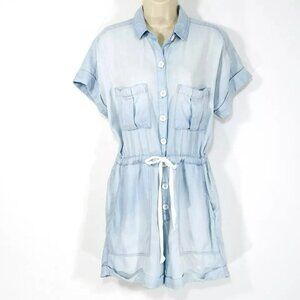 Rolled Hem Cloth & Stone Blue Chambray Utility Romper Relaxed Sz S
