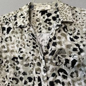 Cloth & Stone Anthropologie Shirt Top Button Up Tencel Lyocell Animal Print