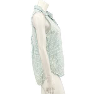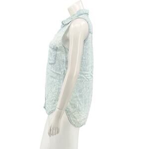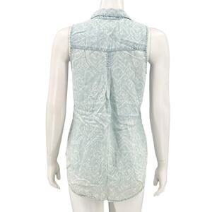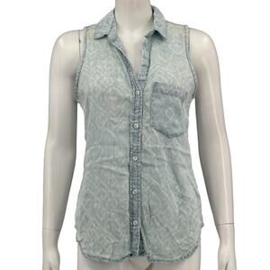 Cloth & Stone Anthropologie Top Womens Small Blue Button Up Sleeveless 100% Tencel V-Neck Chest Pocket Grunge Country Casual Summer Festival Boho Southwestern