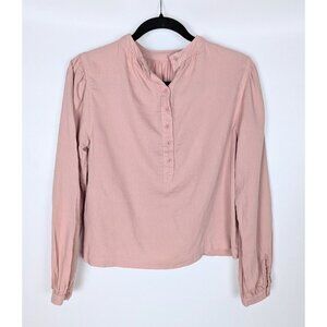 Cloth & Stone Anthropologie Top Womens XS Pink Linen 1/2 Button Up Long Sleeves