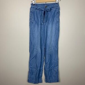 Cloth & Stone Anthropologie Wide Leg Blue Chambray Pants Size 26, Lightweight