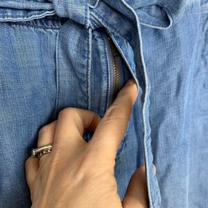 Cloth & Stone Anthropologie Wide Leg Blue Chambray Pants Size 26, Lightweight. Belted, front pockets, zip, fly, side leg slit. In great condition.