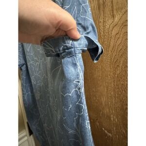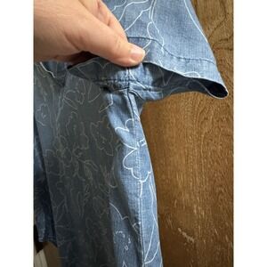 Cloth & Stone Anthropologie Women's Blue Denim-Like Floral V-neck Blouse Flowy M