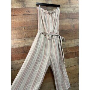 Cloth & Stone Anthropologie striped linen strapless cropped wide-leg jumpsuit L