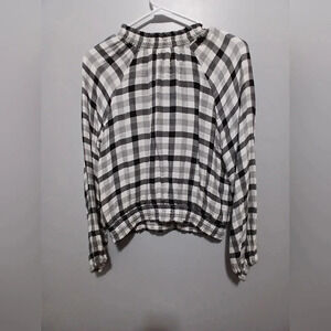 Cloth and Stone by Anthropology Sara v-neck cinched waist black/white plaid top.