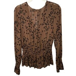 Cloth & Stone Black & Brown Animal Print V-Neck Peplum Blouse Women's XS