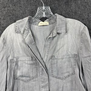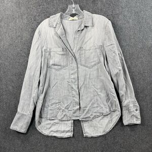 Cloth & Stone Blouse Women's Extra Small Gray Tencell Roll Tab Sleeve Button
