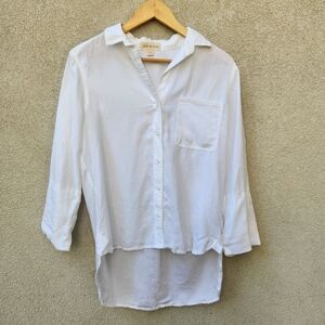 Cloth & Stone Blouse Women's Extra Small White Tencel Pleated Back Stepped Hem