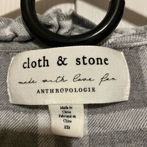 Cloth & Stone Blouse Women’s Sz XXS Gray Plaid V Neck Casual School Lightweight