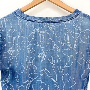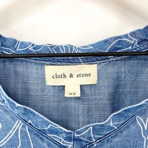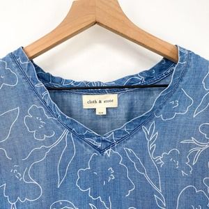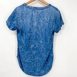 Cloth & Stone Blue Chambray Floral Print V-Neck Hi-Low Tee Size X-Small