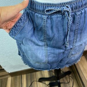 Cloth & Stone Blue Denim Front Pockets Pull Tie Mini Skirt Size XS