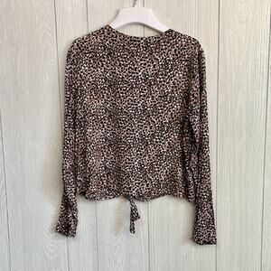 Cloth & Stone Brown Black Print V-Neck Long Sleeve Top Medium