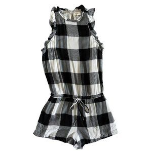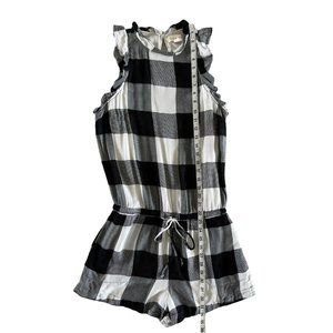 Cloth & Stone Buffalo Check Romper Black White Anthropologie Small Pockets $128.