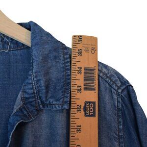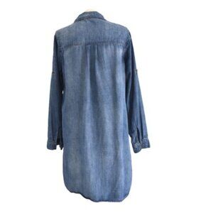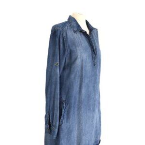 This Cloth & Stone dress blends casual ease with an effortless denim-inspired look. Made from 100% Tencel, it features a soft drape, long sleeves with tab roll-up detail, side pockets, and a relaxed shift silhouette. The half-placket neckline adds a touch of polish, making it versatile for layering or standalone wear. Brand Cloth & Stone, size medium.