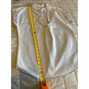 Cloth & Stone Chambray Split Neck Top XS Blue Tencel Short Sleeve Casual Blouse