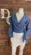 Cloth & Stone Chambray Denim Top. Collard Neckline. Surplice Wrap Design. Tie Side Hemline. Double Inner Buttons for Adjustable Waistline. Stock Photo is same item, different color.