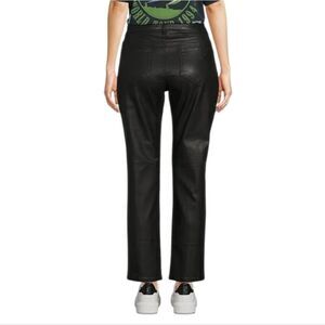 Black coated straight leg pants give the appearance of leather / faux leather, except you can move and breathe.