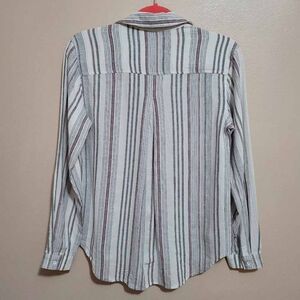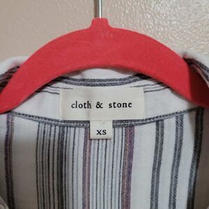 Cloth & Stone Cream High-low Long Sleeve Striped Shirt Size X-Small
