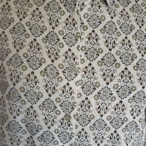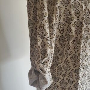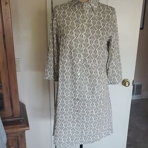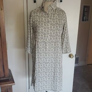 Elegant cream dress with intricate pattern. Button-down front. Long sleeves. Perfect for casual outings.I have this shirt dress in an XXL size.