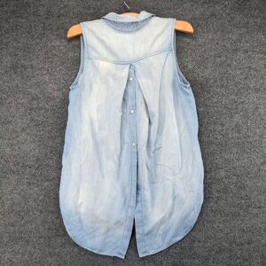 Cloth & Stone Denim Button Up Vest Womens Small Sleeveless Blue High Low Hem