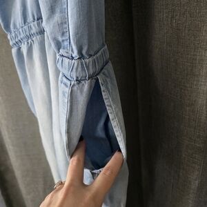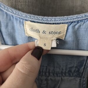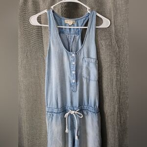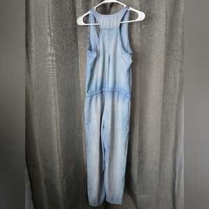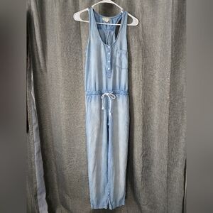 Cloth & Stone Denim Chambray Sleeveless Jumpsuit Size S Tie Waist Button Front
