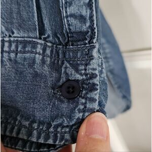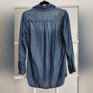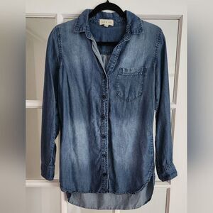 Stylish Cloth & Stone blue denim button-up shirt with a classic collar and front pocket.