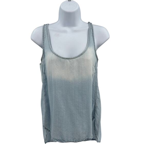 Cloth & Stone Denim Tank Top WMNS XS Blue Faded Colorblock Sleeveless Scoop Neck