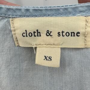 Cloth & Stone Women's Extra Small Denim Tank Top in a Soft Blue Faded Wash, Featuring a Color Block Design, Scoop Neckline, and Sleeveless Pullover Style, Made from 100% Tencel for a Lightweight, Breathable Feel; Style Number C2923-670, Made in China.