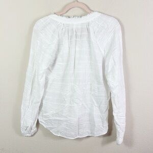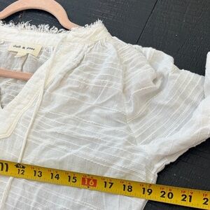 Cloth & Stone Evereve Ruffle Raglan Pullover Linen Cotton Blend White Top Tie Neck size S