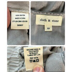 Beautiful Anthropologie Cloth & Stone sleeveless tank jumpsuit in a gray stonewashed hue. Size XS, in excellent pre-owned condition with no flaws. Effortlessly soft and lightweight — perfect for casual styling, travel, or layering with a cardigan or denim jacket. Features a scoop neckline, elastic waistband for a flattering fit, side pockets, and a relaxed tapered leg.