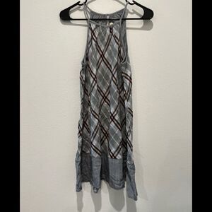 Cloth & Stone Gray Diamond Print Plaid Halter Keyhole Back Swing Dress S