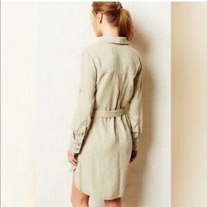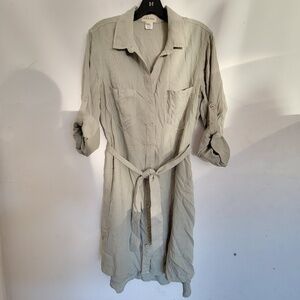 Cloth & Stone Green Tencel Button Front Shirt Shift Dress Rolled Tab Size Medium