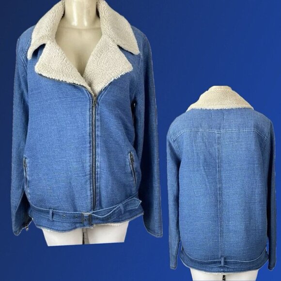 ITEM: Cloth & Stone L Denim Blue Faux Shearling Lining Cotton Pockets Zip Long Sleeve Jacket