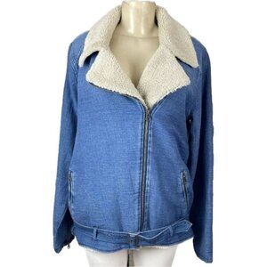 Cloth & Stone L Blue Denim Faux Shearling Cotton Pockets Zip Long Sleeve Jacket