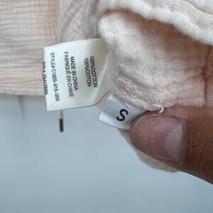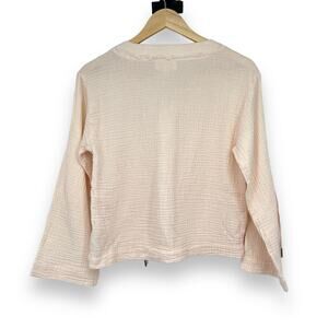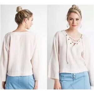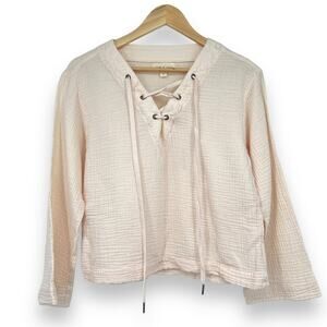 Cloth & Stone Lace Up Gauzy Top Women's S Blush Pink Cotton Long Sleeve Coastal