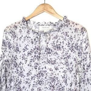 Cloth & Stone Leopard Print Blouse V-Neck Tie Neck Long Sleeve Workwear Chic L